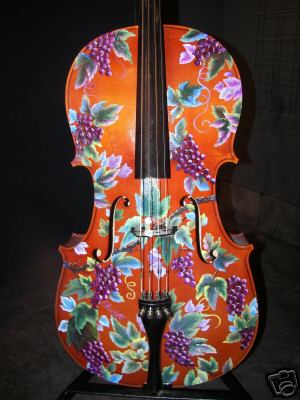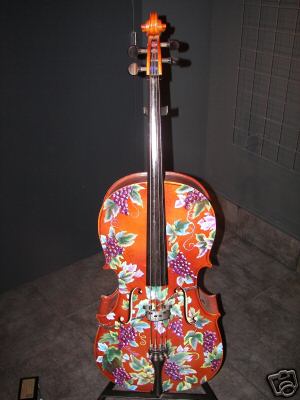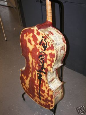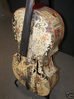 Modesto Artist: This cello, designed by Kristi Hughes, is painted with an Asian inspired theme. Kristi Hughes also goes by T'ang Mei Yun. Visit her webiste at http://www.tangmeiyun.com. 209-544-5213. Kristi Hughes, reflecting her Eurasian heritage, paints under the name T'ang Mei Yun. Her unique art transcends the present, while beckoning the past. She is inspired by the belief that art is the manifestation of Spirit and Soul, and the beauty of calligraphy is capturing the essence of its energy without stopping it.