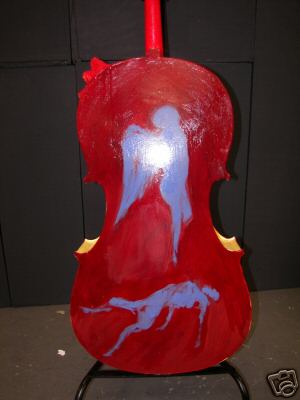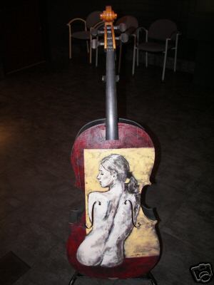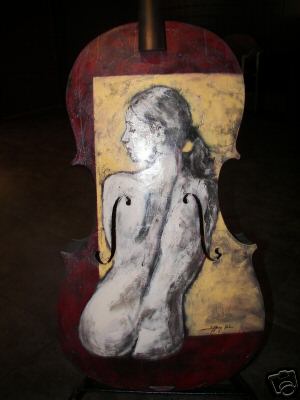 Modesto Artist: Jeffrey Hale, is a painting of a woman with her back turned on the front of the cello. Jeffrey Hale's work can also be seen at Michelle Lacy Interiors: 209-575-2332