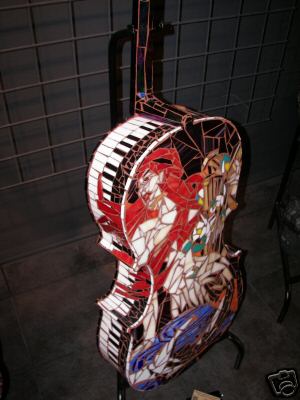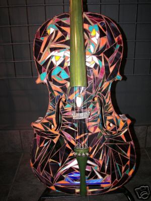 Modesto Artist: Gloria Bartels is an active painter whose art has been exhibited throughout Modesto and the Central Valley, including murals at The House of Java, Gold's Gym and Copperopolis Elementary School. Her cello is titled "Fancy the Glass Cello," is inspired by her penchant for mermaids. Her cello is a glass mosaic. Phone 209-524-1994. From an article on the web: http://www.findarticles.com/p/articles/mi_qn4155/is_20040104/ai_n9619926 quoted/edited: