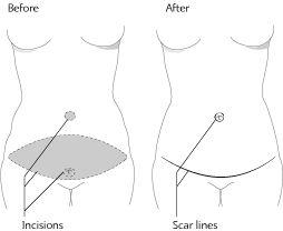 virtue of pulling down the lower abdominal skin to close the incision. By